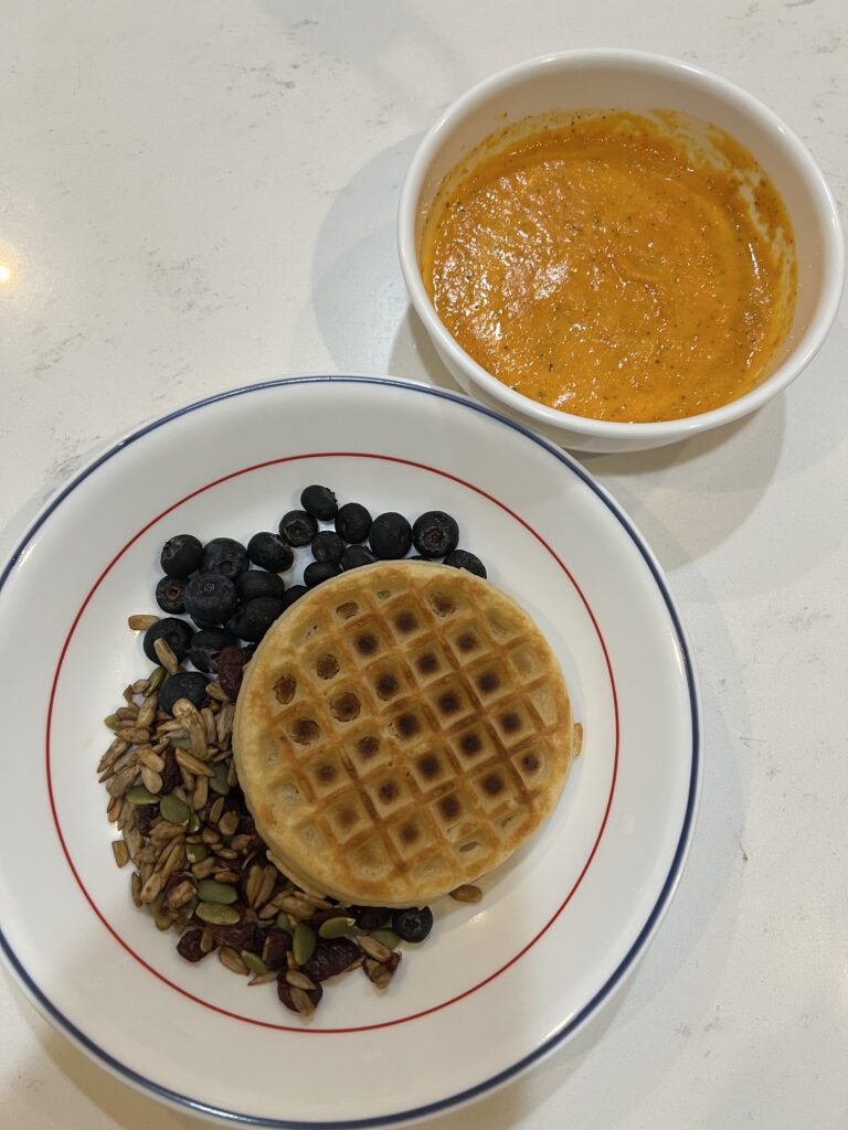 For breakfast, we had tomato soup, waffles, mixed seeds and some blueberries. I normally have early lunch, so that was enough for me to stay full till lunch.