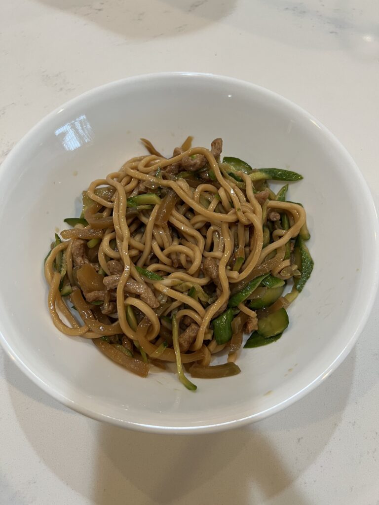 The left overs food from the vegan restaurant we tried yesterday were still really good. It was worth every penny. I finished the noodle for breakfast and the tofu for lunch. M took some of the tofu and turned it into another new noodle dish for lunch.