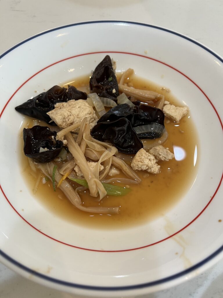 For dinner, I made this vegetarian version of a Chinese dish that my mom usually makes. I never really liked this dish that much growing up, but I’ve grown to like it in recent years. It’s a steamed dish made with simple ingredients such as wood-ear mushrooms, this chewy and crunchy stuff called banana flowers, onion, ginger, garlic, green onion and tofu. For seasoning, I used soy sauce, a pinch of salt, a little bit of sugar and mushroom seasoning power that enhances the flavor like how MSG does. Note to self, next time use fewer banana flowers as they kind of taste sour when put too much.